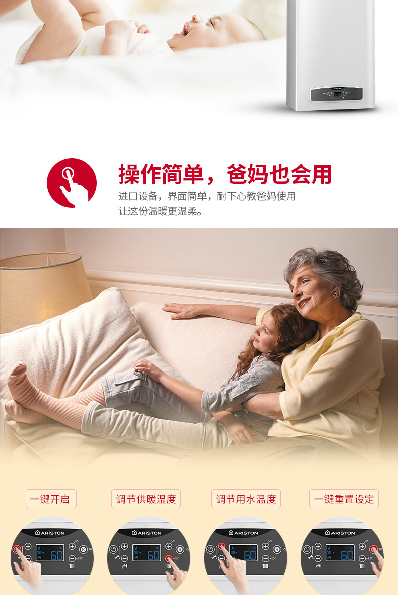 阿里斯顿X系列燃气采暖热水炉,为您带来全方位的家庭供水解决方案。无论是供暖还是热水,一台壁挂炉皆可轻松满足